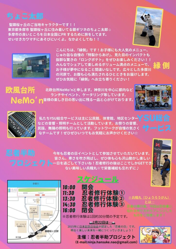 2/15(日)忍者半助プロジェクト せいせきカワマチ忍者の日2026を開催いたします。みんなぜひ遊びに来てね!!#忍者半助プロジェクト #忍者半助 #忍者の日 #せいせきカワマチ #手裏剣体験 #忍者修行体験 #半助流忍術学校 pic.twitter.com/g4nUD4ysX5