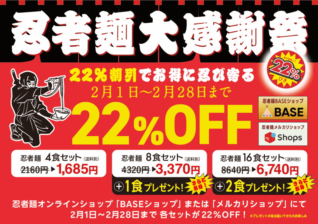 【22%オフ】2年連続 忍者麺大感謝祭!